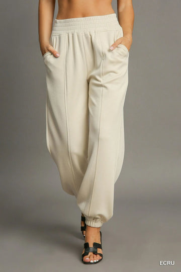 Umgee Drawstring Jogger Pants with Front Seam Detail